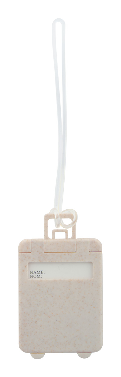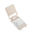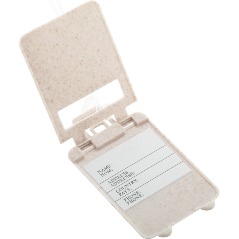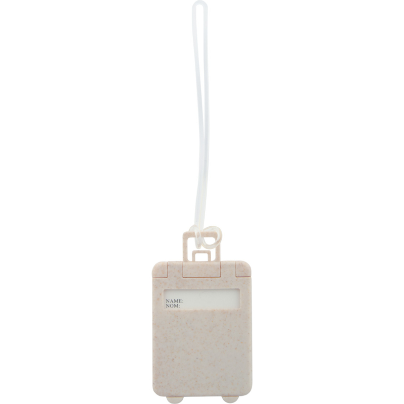 Étiquette à bagage en plastique écologique en paille de blé en forme de sac trolley, avec sangle élastique.