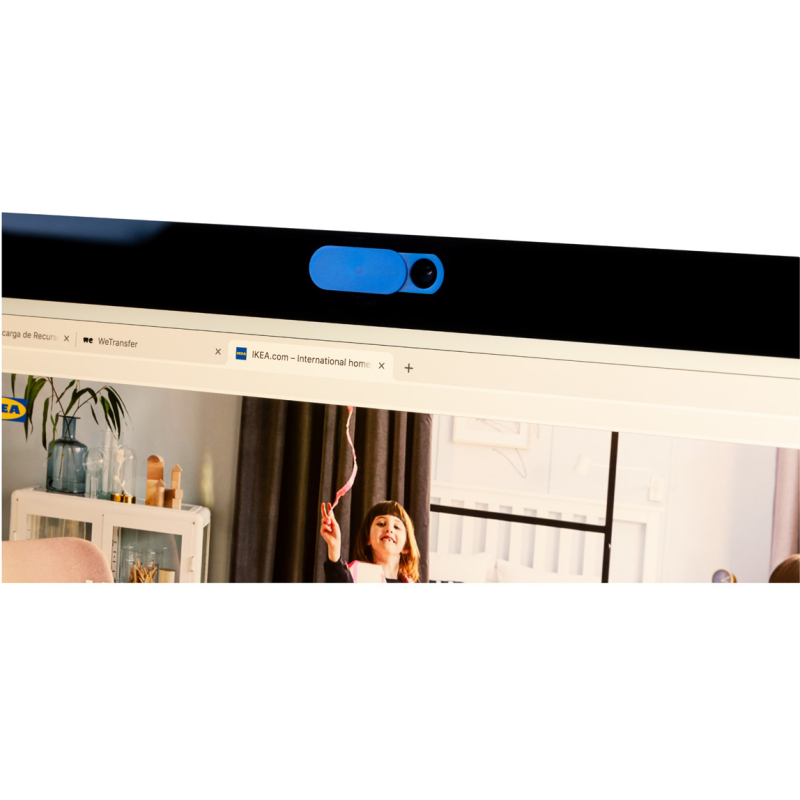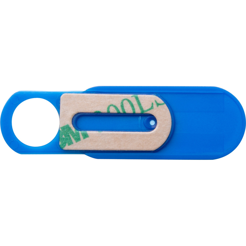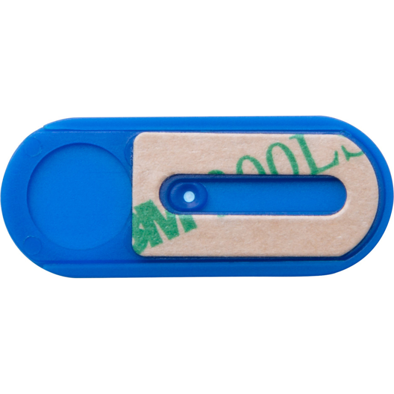Cache webcam en plastique avec couvercle coulissant et dos adhésif.