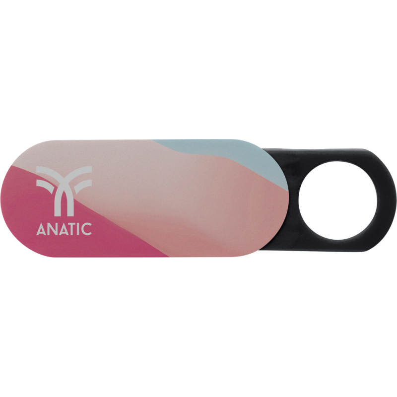 Cache webcam en plastique avec couvercle coulissant et dos adhésif.