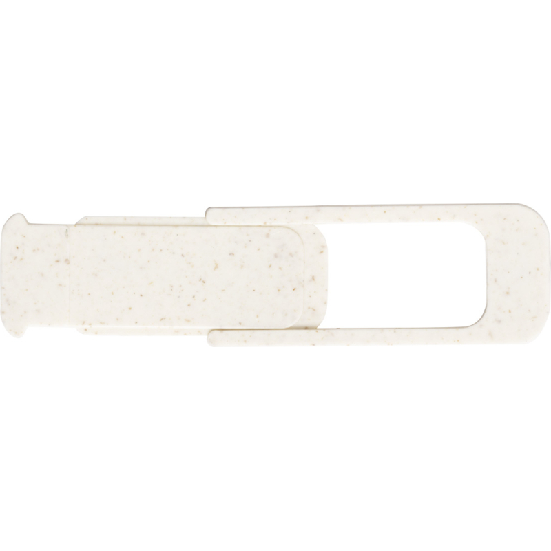 Cache webcam en paille de blé avec couvercle coulissant et verso adhésif.
