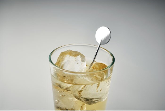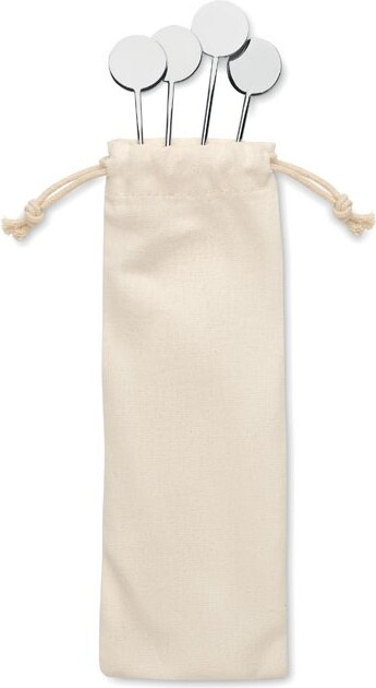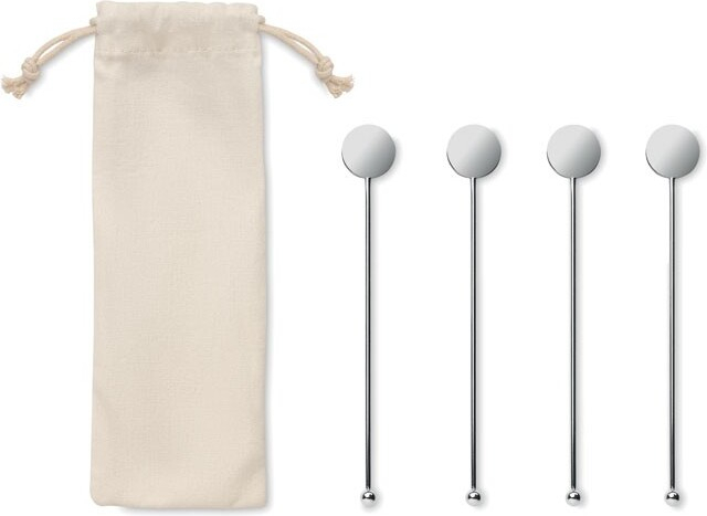 Jeu de 4 touillettes en acier inoxydable dans une pochette à cordon en coton.