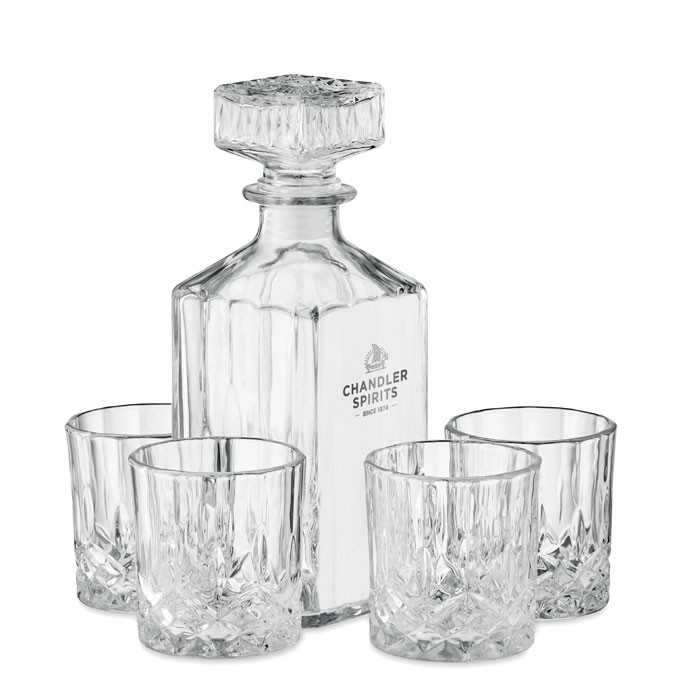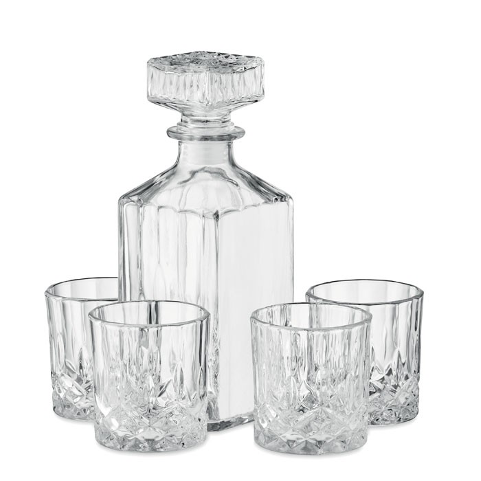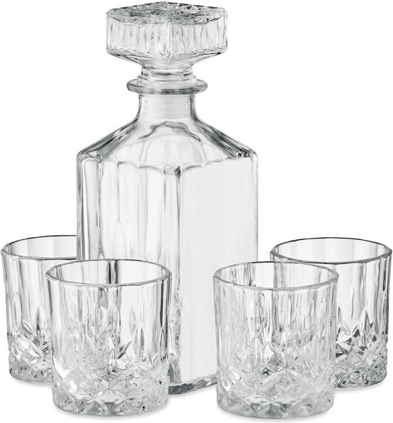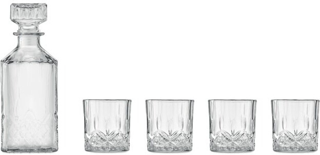 Service à boissons en verre de luxe. Comprend 4 verres (230 ml) et une carafe en verre (900 ml).