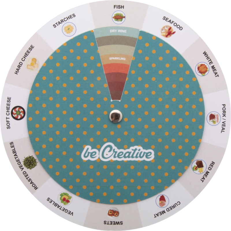 Disque en papier sur mesure avec tableau des accords mets et vins. Le prix comprend l'impression quadri. Quantité: 100 pièces.