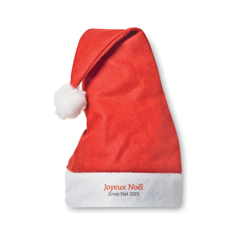 Chapeau de noël traditionnel avec pompon blanc. Non-tissé.