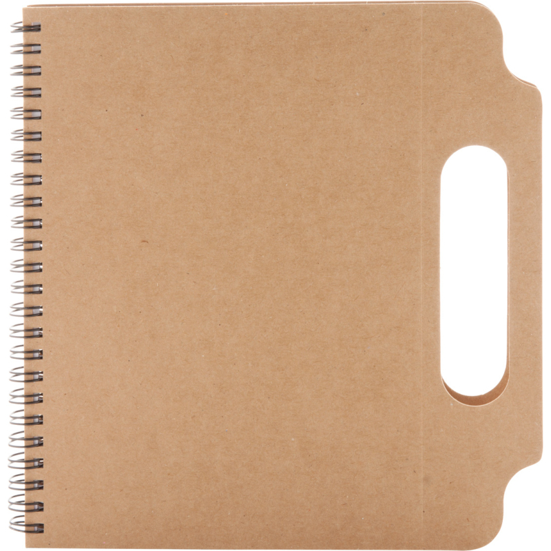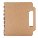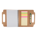 Cahier à spirales avec couverture en carton recyclé, 70 pages lignées, stylo à bille et mémos repositionnables (125 petits et 25 grands).