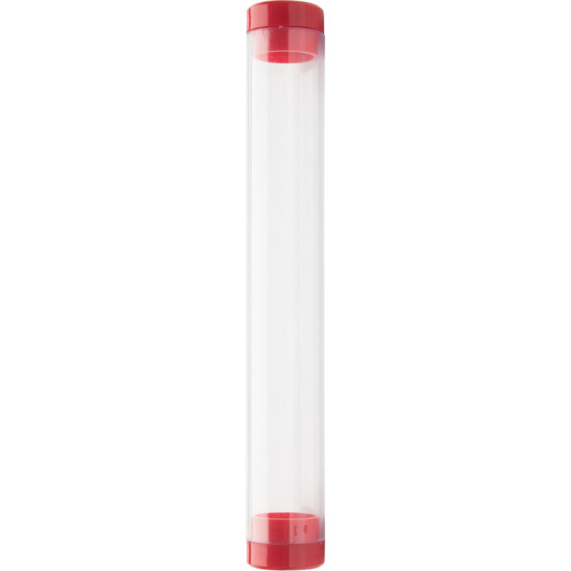 Tube en plastique cylindrique transparent embouts colorés pour 1 stylo.