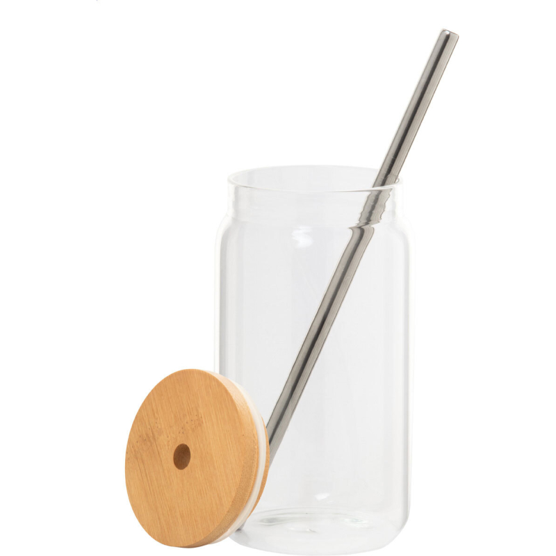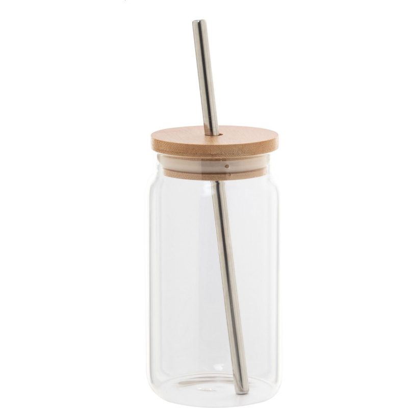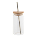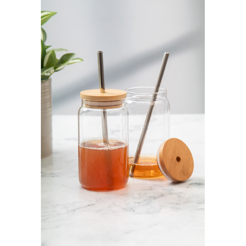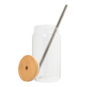 Pot Mason en verre borosilicaté avec paille en acier inoxydable recyclé et couvercle en bambou, 450 ml.