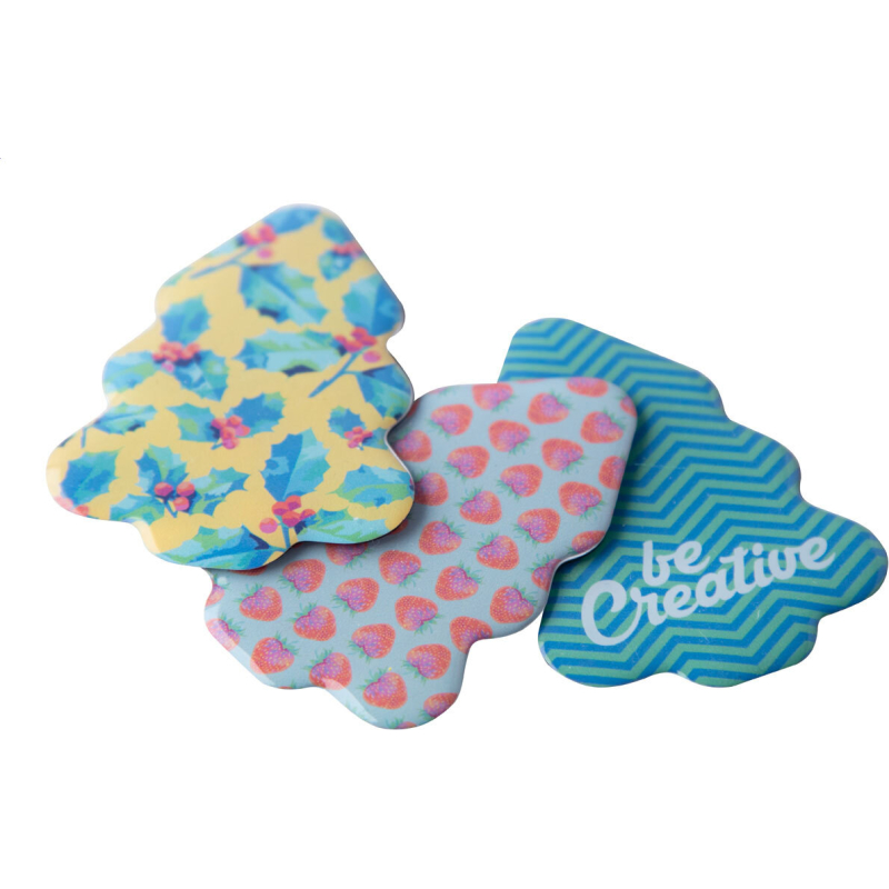 Magnet en doming sur-mesure, de forme unique avec marquage digital. Quantité minimale: 100 pcs.