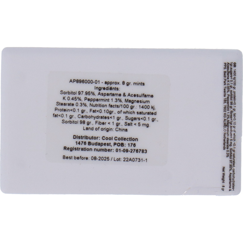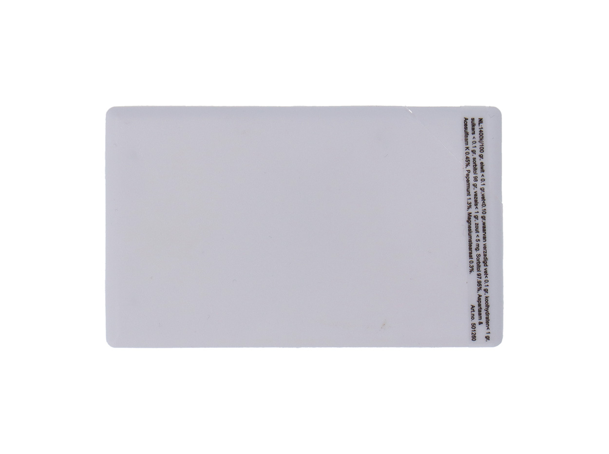 Boîte bonbons à la menthe en plastique en forme de carte avec env. 8 g de bonbons au menthol.
