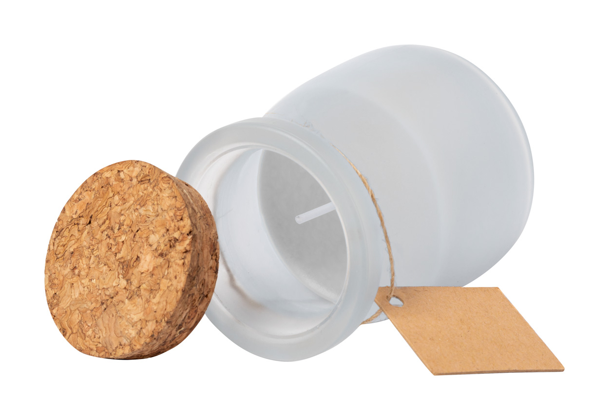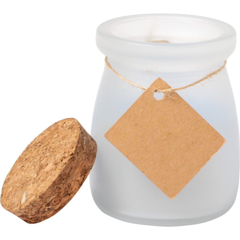 Bougie parfumée dans un pot en verre.
