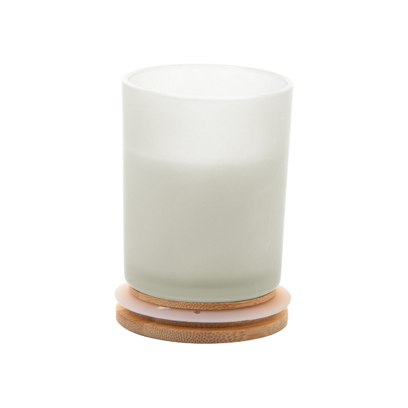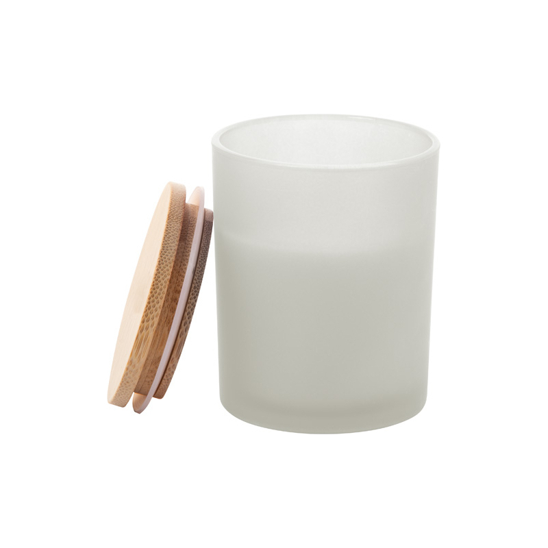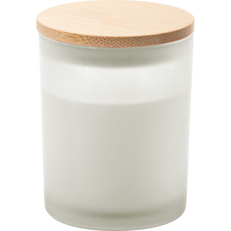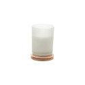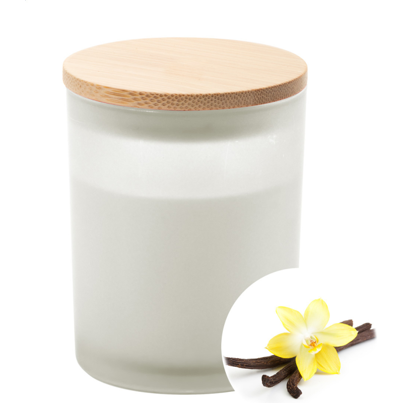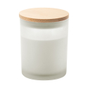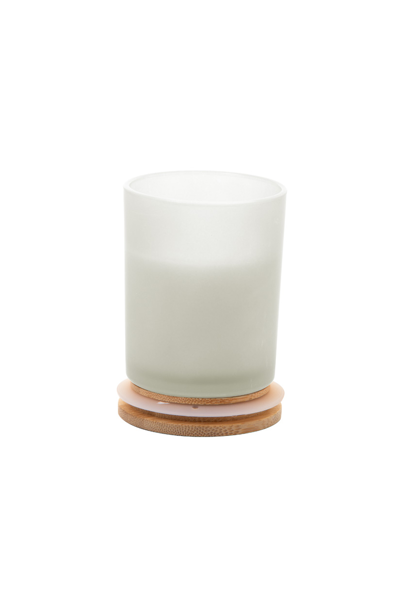 Bougie en cire végétale parfumée dans un support en verre dépoli avec couvercle en bambou. Avec 120 grammes de cire. Dans une boîte en papier kraft.