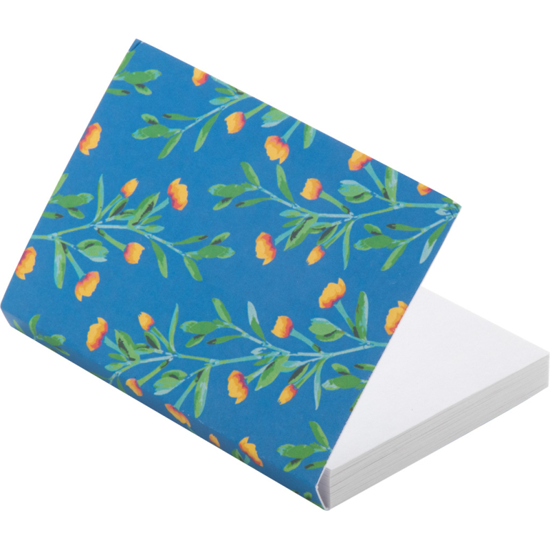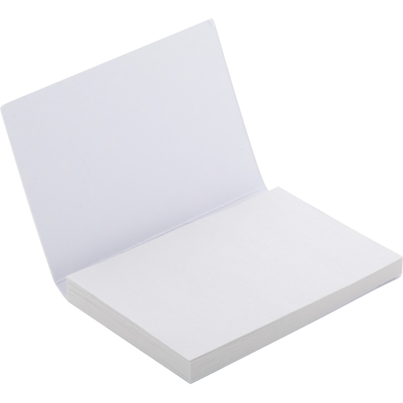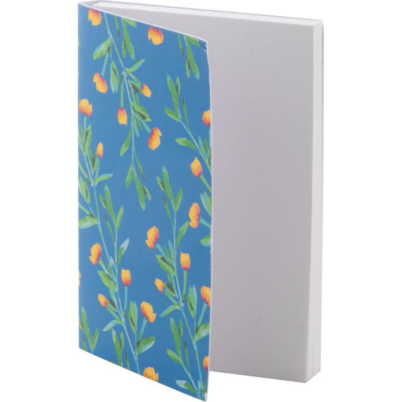 Bloc-notes autocollant sur-mesure recouvert de papier. Comprend 50 feuilles de papier recyclé (50×75 mm). Le prix comprend la couverture extérieure imprimée en quadri. Quantité minimale de commande: 100 pièces.