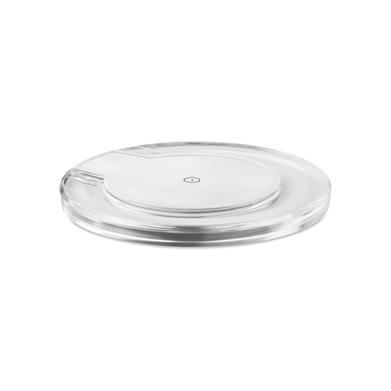 Chargeur sans fil. Connectez l'appareil à votre ordinateur, posez le smartphone dessus et laissez-le charger. Lumière bleue lors du chargement. Compatible avec les derniers androïds, iPhone® 8, X et plus récents. Output: DC5V/1A (5W).