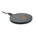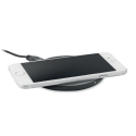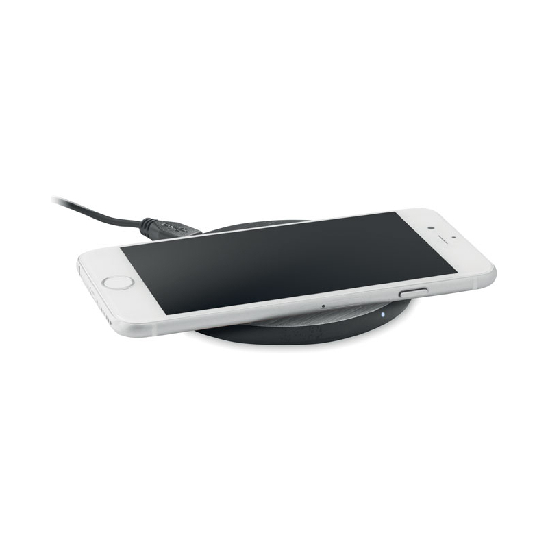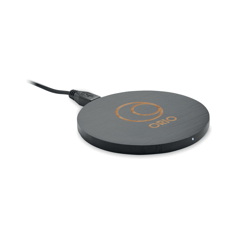 Chargeur sans fil en bambou. Connectez l'appareil à votre ordinateur, placez y le smartphone démarrer la charge. Lumière bleue lors de la charge. Sortie : DC9V/1.1A (10W). Compatible avec les appareils QI, derniers Androids, iPhone® 8 et plus récents.