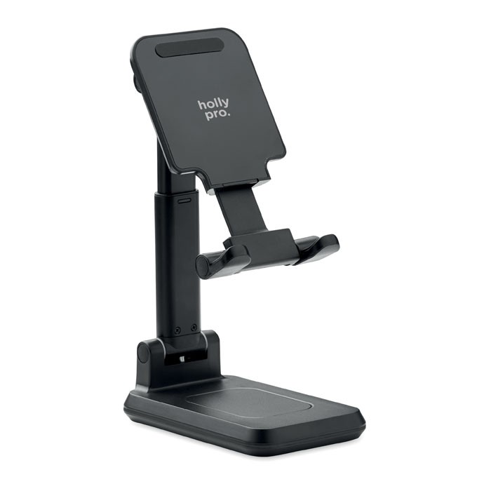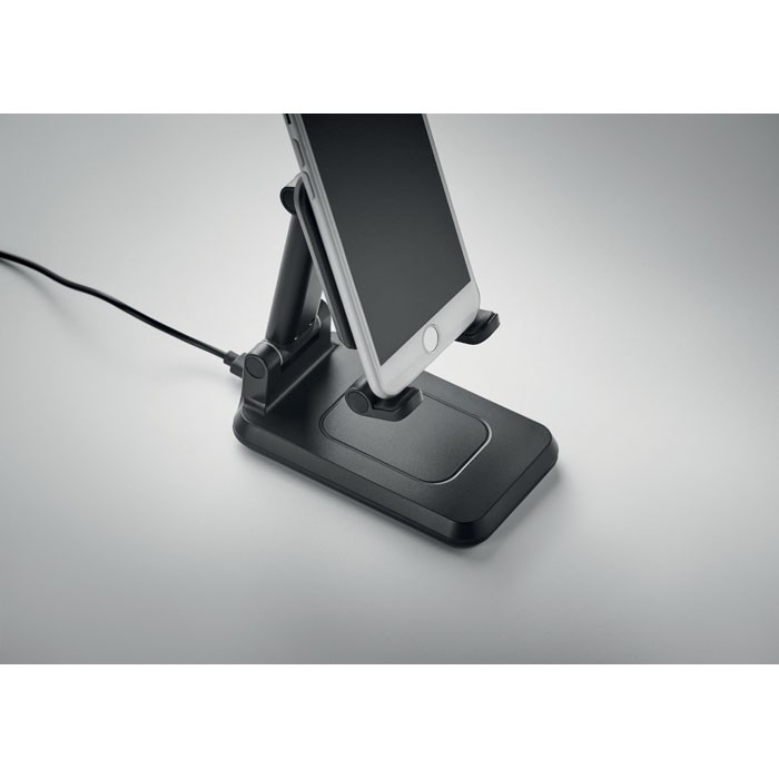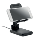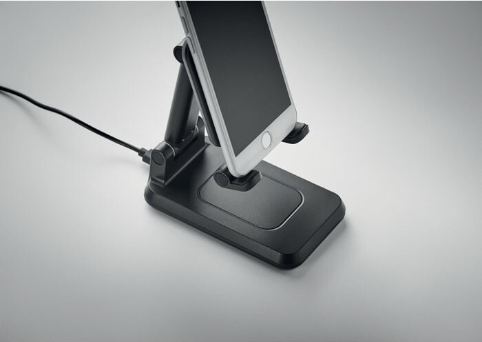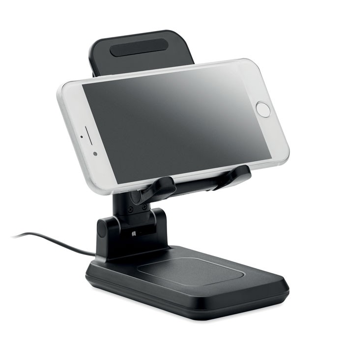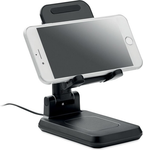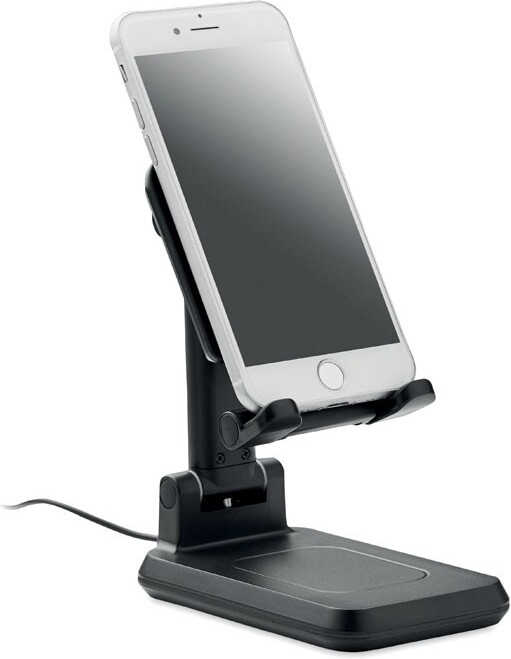 Chargeur sans fil 15W en ABS pour 1 appareil avec support pour smartphone extensible et pliable et support. Sortie : DC 9V/1.67A (15W) pour une charge rapide. Compatible avec les derniers Androïdes, iPhone® 8, X et plus récents.