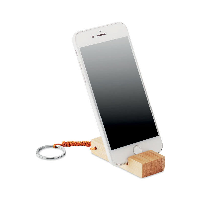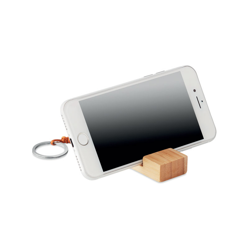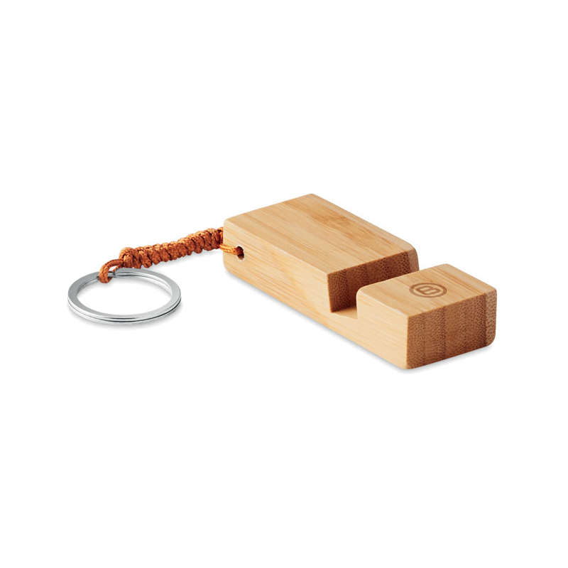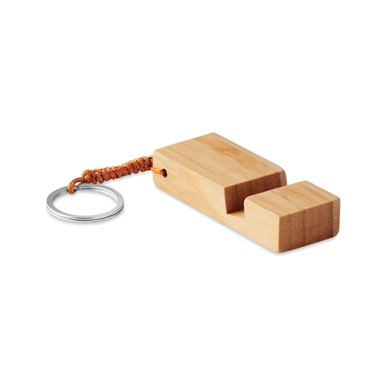 Porte-clés avec support Smartphone en bambou. Le bambou est un produit naturel, et présente de légères variations de couleur, de décoration et de tailles.