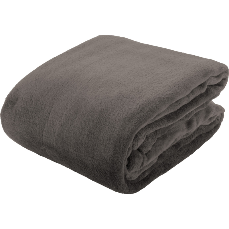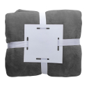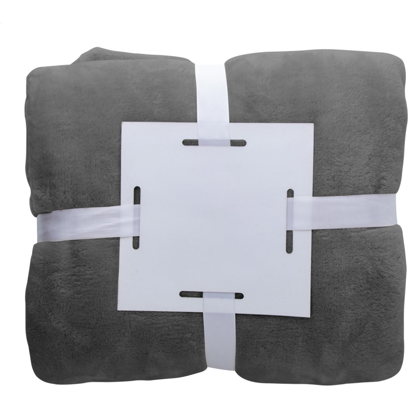 Couverture polaire en flanelle, 280 gr / m². Conditionnée avec un ruban blanc et une carte papier imprimable.