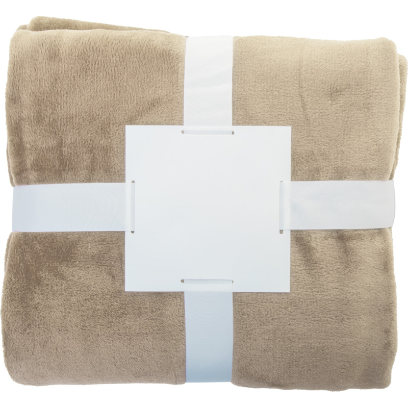 Couverture polaire flanelle RPET, 260 gr/m². Emballé avec ruban et une carte papier imprimable.