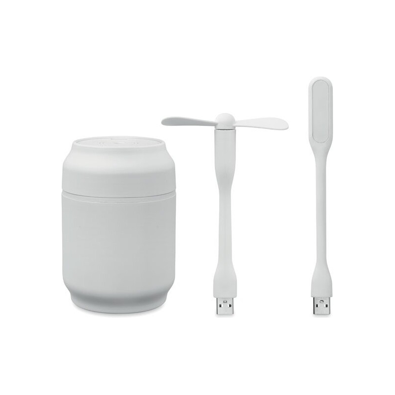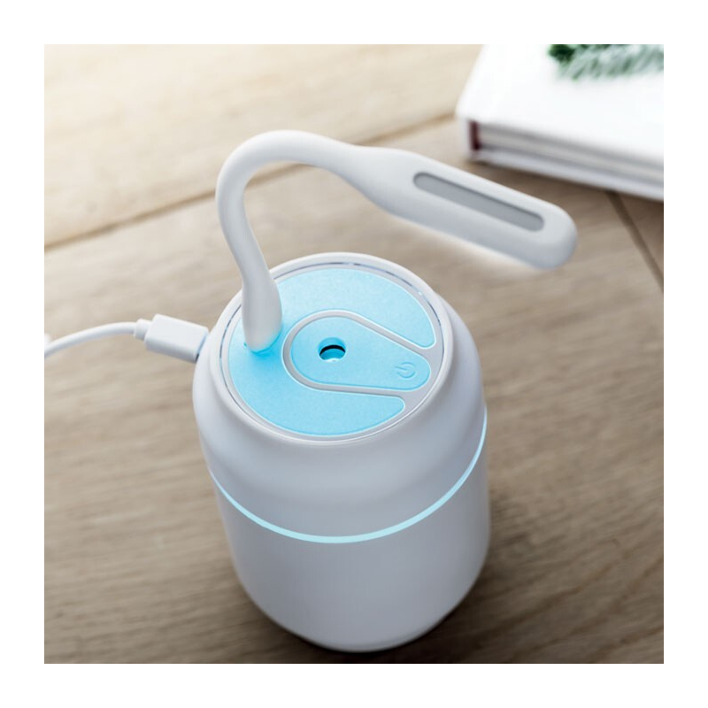 Humidificateur 3 en 1 en forme de cannette. Mini ventilateur avec une veilleuse en 6 couleurs qui changent selon l'humeur.