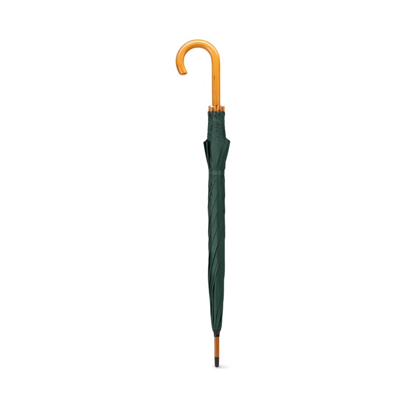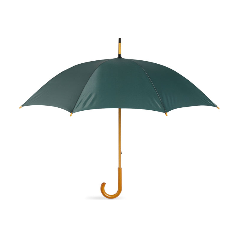 Parapluie en PE 190 T avec manche et poignée en bois. Ouverture manuelle. Diam 100 cm. Long. mât 60 cm