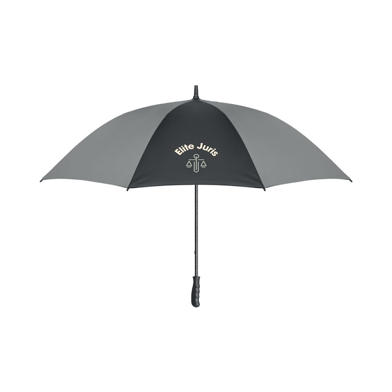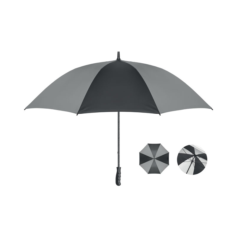 Parapluie tempête de 30'''' à ouverture et fermeture manuelle en pongé 190T (4 pans) et matériau réfléchissant (4 pans) avec mât, baleines en fibre de verre. Poignée droite en ABS avec finition en caoutchouc.