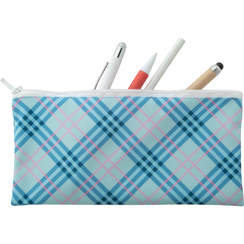 Trousse zippée sur mesure en polyester. Impression en sublimation. Quantité minimum : 50 pièces.