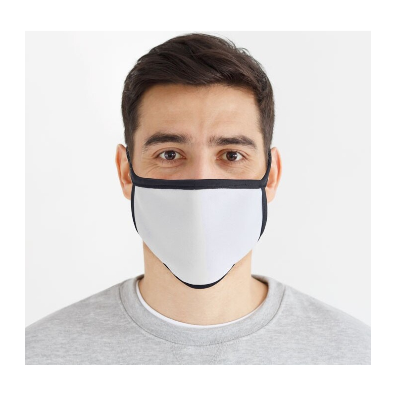 Masque grand public lavable 3 épaisseurs, pour sublimation avec deux couches de polyester et une couche intérieure de coton. Article vendu uniquement avec marquage. Cet article n’est pas à usage médical. Taille : L-XL. Convient aux adultes. Cet article est conforme à la norme REACH et est également testé avec succès avant utilisation et après 10 cycles (60◦) de lavage Il est également conforme à la norme CWA17553 : 2020, EN13274-7, ISO9237. Filtration 90% / Catégorie 1. Cet article n’est pas disponible à la vente en Suisse. Protégez-vous et les autres contre Covid-19.