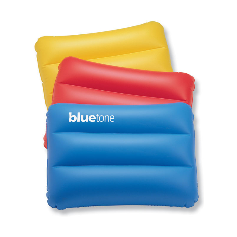 Oreiller de plage gonflable en PVC de forme rectangulaire.