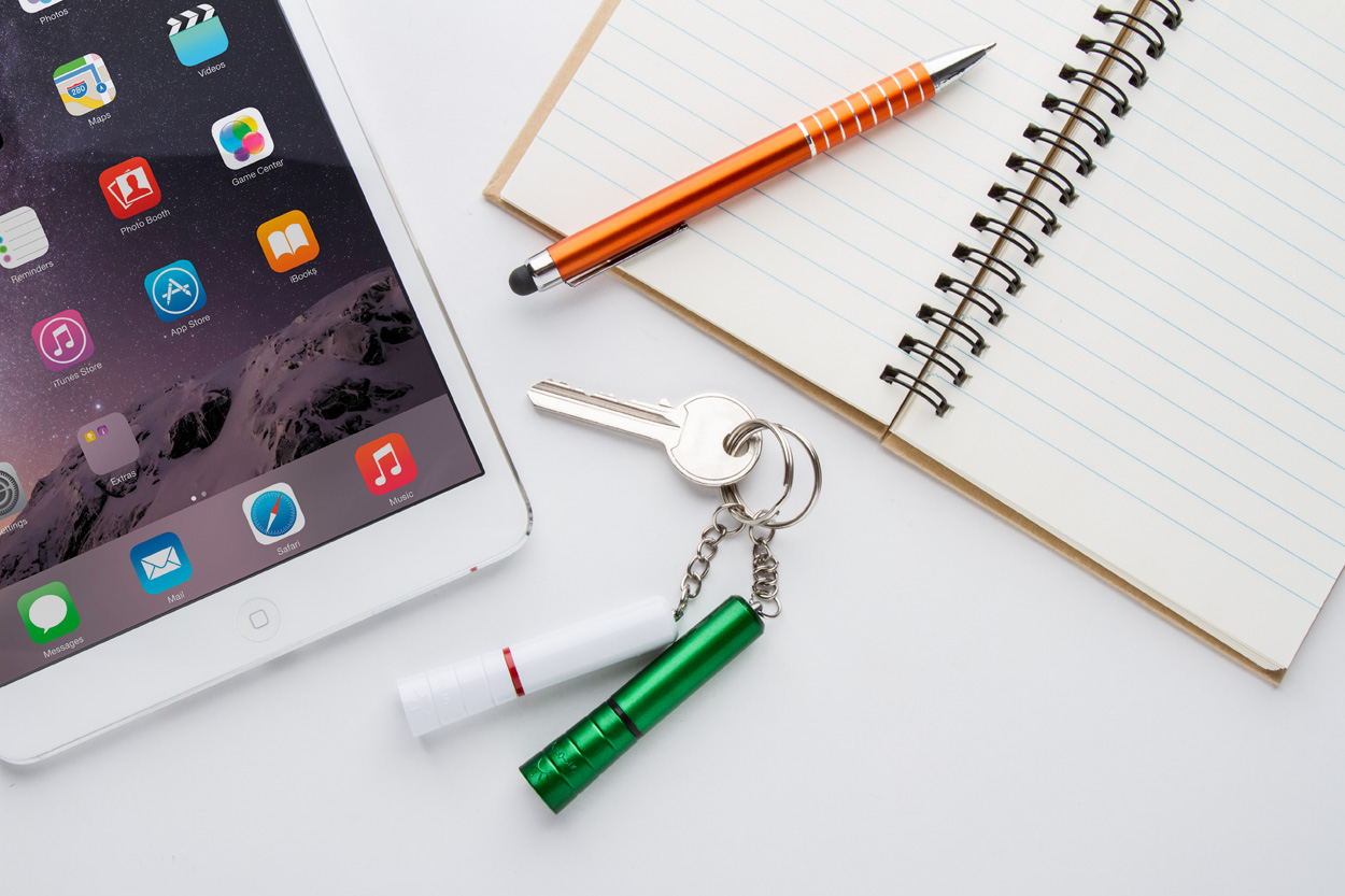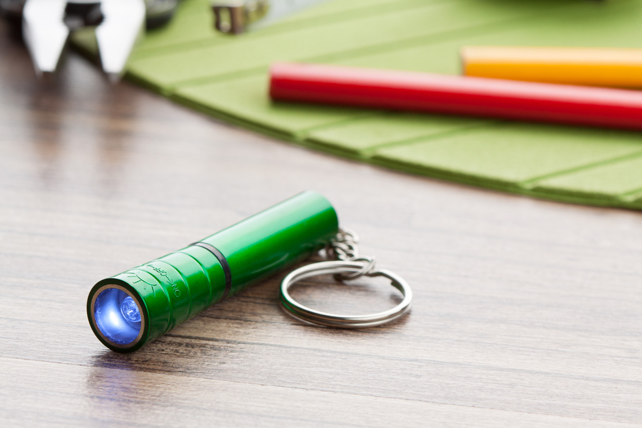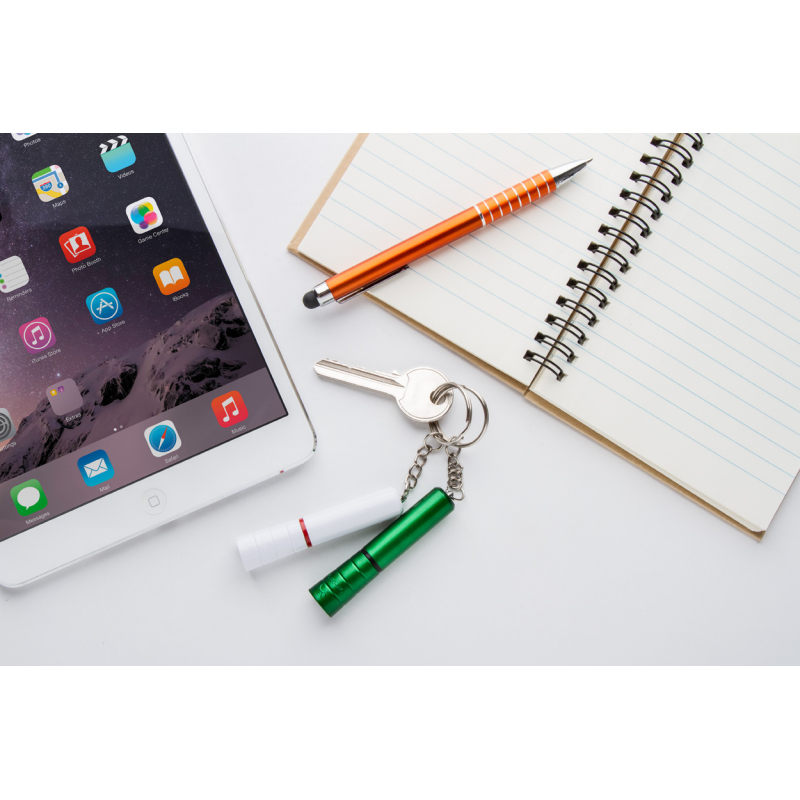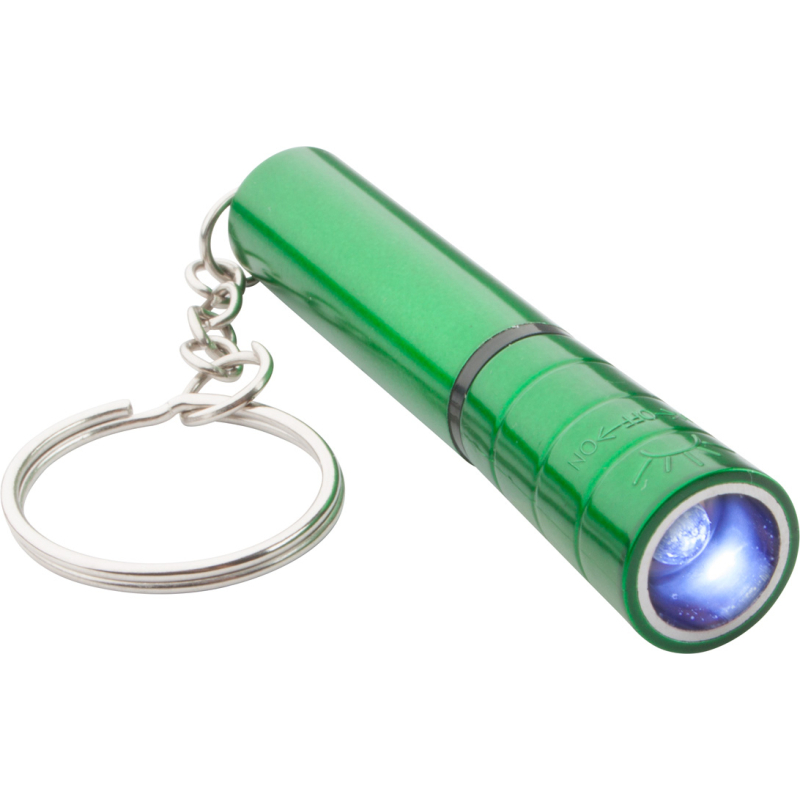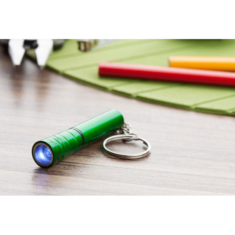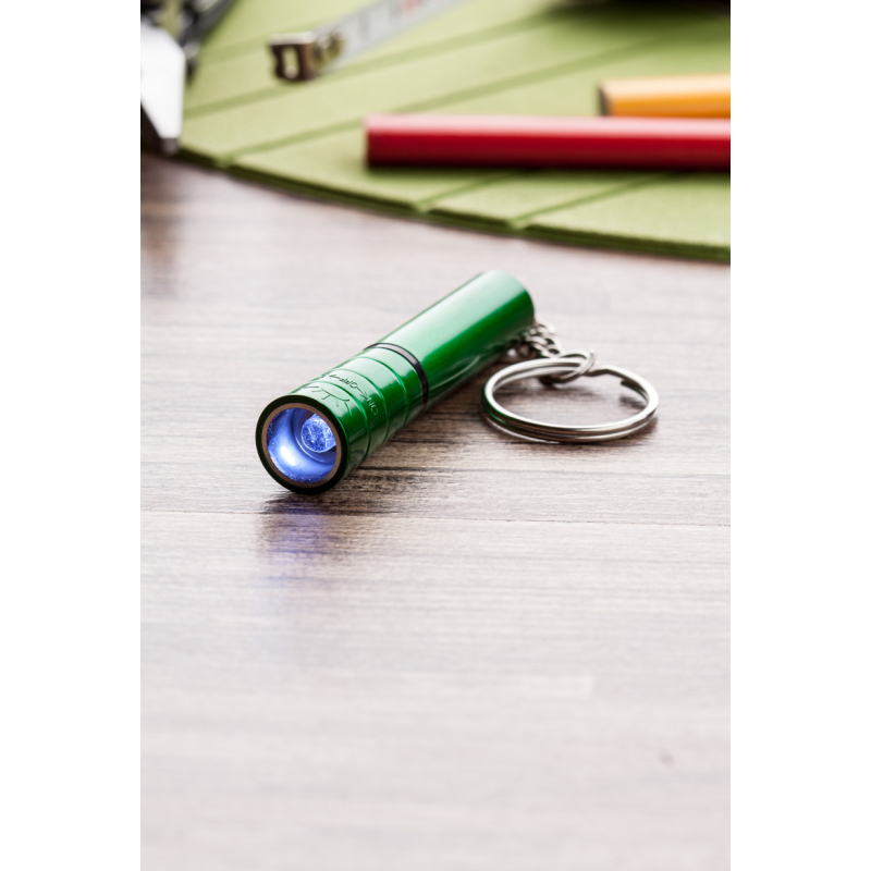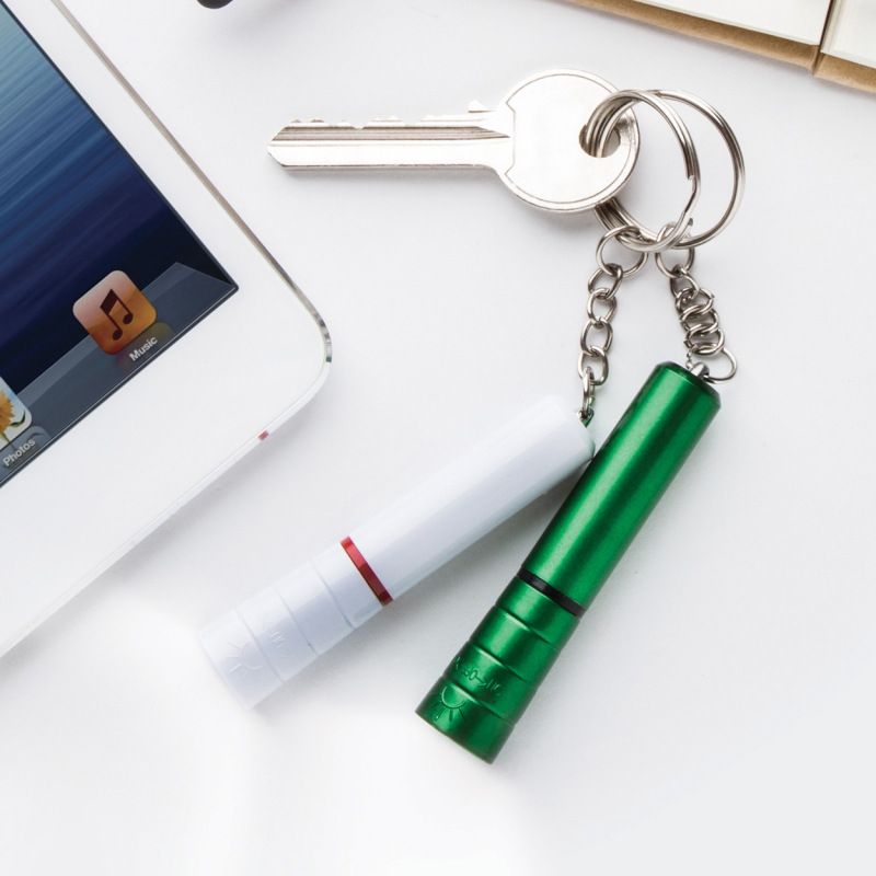Mini lampe torche en plastique, avec lampe LED blanche et anneau en métal. 3 piles bouton comprise.