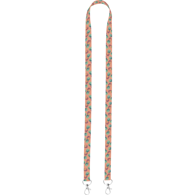 Tour de cou en polyester, 15 mm avec mousqueton en métal et système anti-étranglement. Grâce à la sublimation le logo peut être imprimé sur les deux côtés. Quantité minimale: 100 pcs.