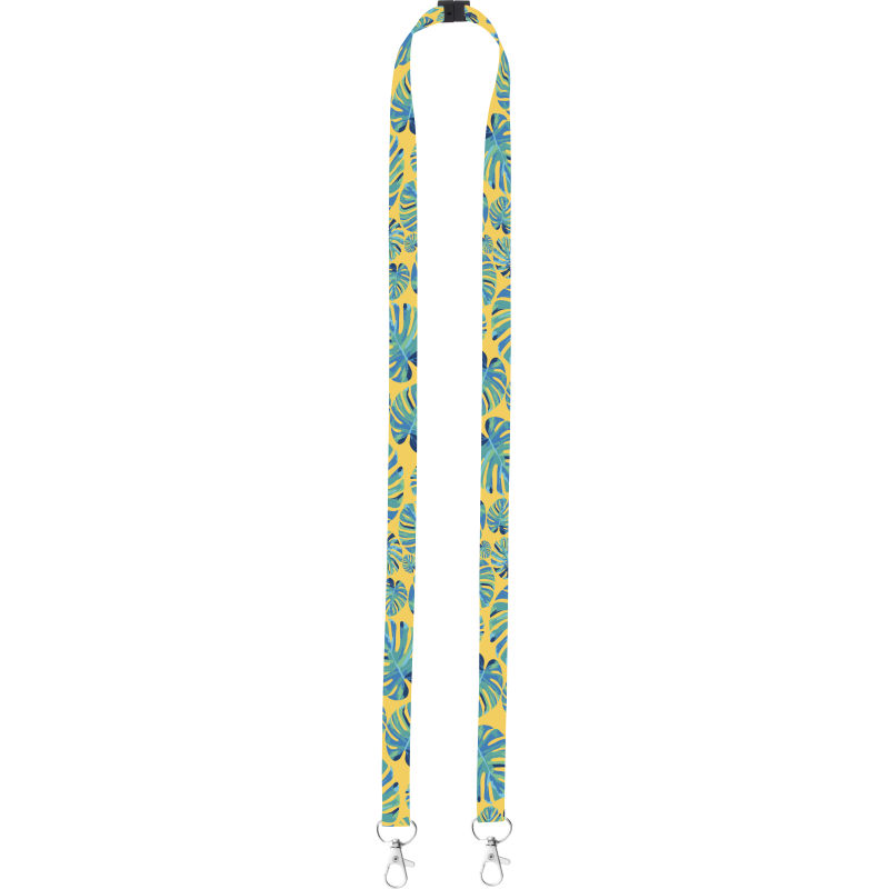 Tour de cou en polyester, 15 mm avec 2 mousquetons en métal et système anti-étranglement. Grâce à la sublimation le logo peut être imprimé sur les deux côtés. Quantité minimale: 100 pcs.
