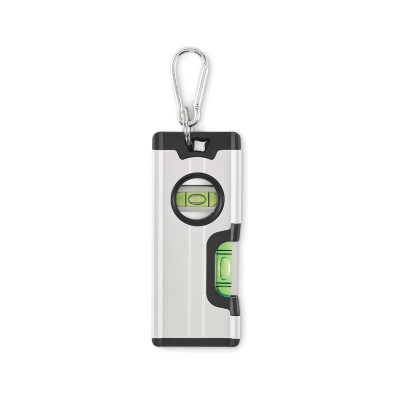 Mini niveau à bulle magnétique double dans un boîtier en aluminium avec mousqueton. Le mousqueton n'est pas destiné à l'escalade (usage non professionnel).