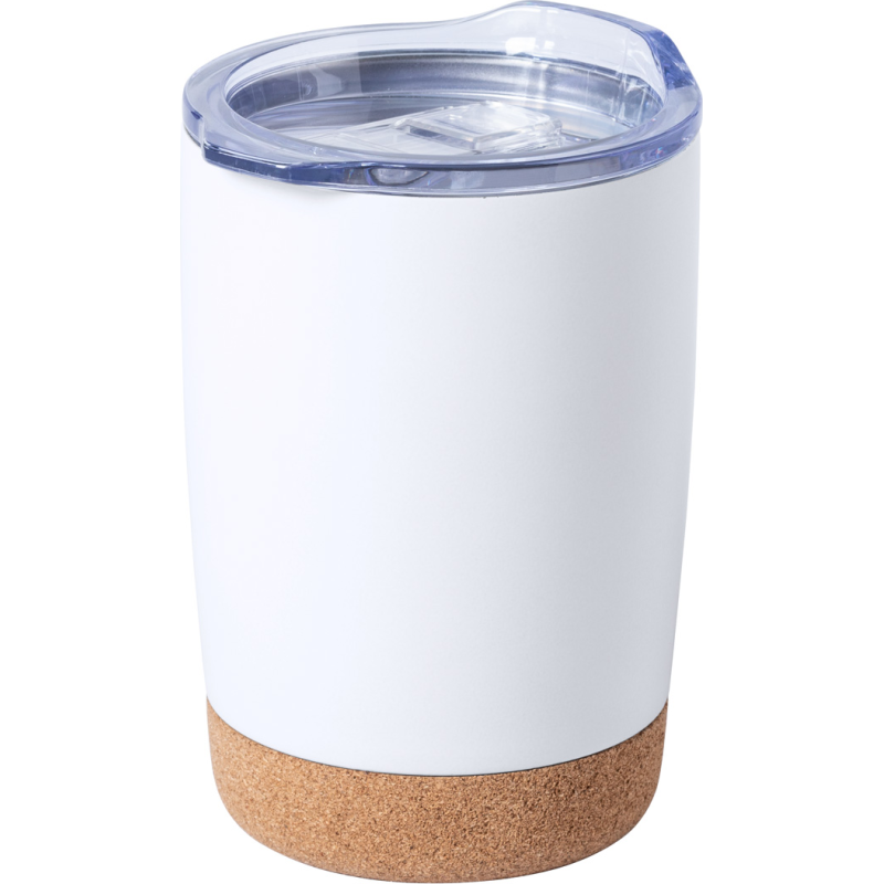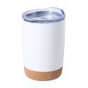 Mug isotherme à double paroi en acier inoxydable avec couvercle transparent et base en liège, 380 ml. Livré dans un coffret cadeau.