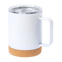 Mug isotherme en acier inoxydable à double paroi avec couvercle et base en liège naturel 330 ml. Livré dans une boîte en papier kraft.
