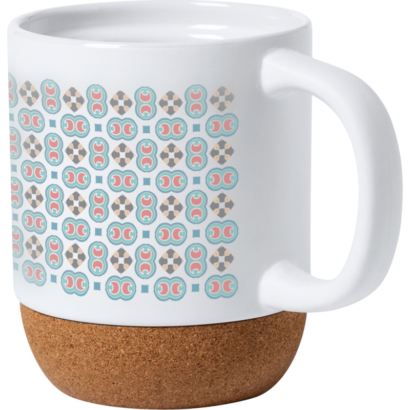 Mug en céramique impression en sublimation avec base en liège naturel 420 ml. Livré dans une boîte en papier kraft.