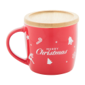 Mug en céramique Noël de haute qualité avec dessous de verre en bambou, 370 ml. Livré dans une boîte en papier kraft.