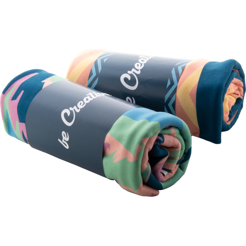 Couverture polaire, marquage en sublimation sur une face. 100% polyester, 250 g/m². Emballé dans un fourreau de papier, impression digitale. Le prix inclut la sublimation et l'impression digitale. Quantité minimum: 25 pcs.