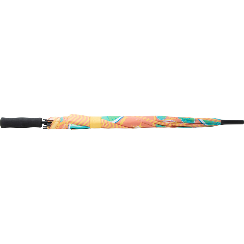 Parapluie automatique sur mesure à 8 panneaux avec tige en métal, baleines en fibre de verre et poignée en EVA. Pongé 190T. Sublimation sur tous les panneaux. Quantité minimale de 50 pièces.
