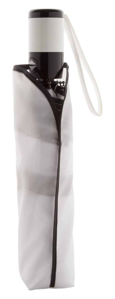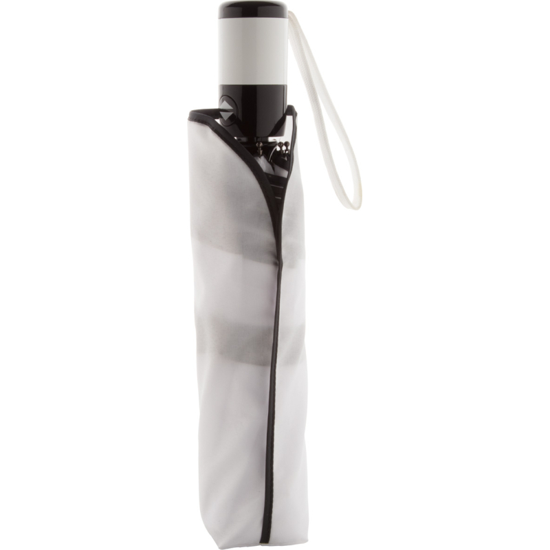Parapluie automatique pliable anti-tempête 8 pans. Armature et tige en métal, baleines en fibre de verre, poignée en plastique et étui de couleur assortie. 190T pongée.
