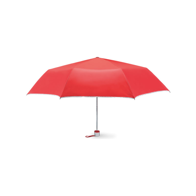 Parapluies pliables avec doublure argentée. Etui en couleur assortie. 8 pans, polyester 190T. Diam 96 cm. Long. Mât 51 cm
