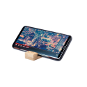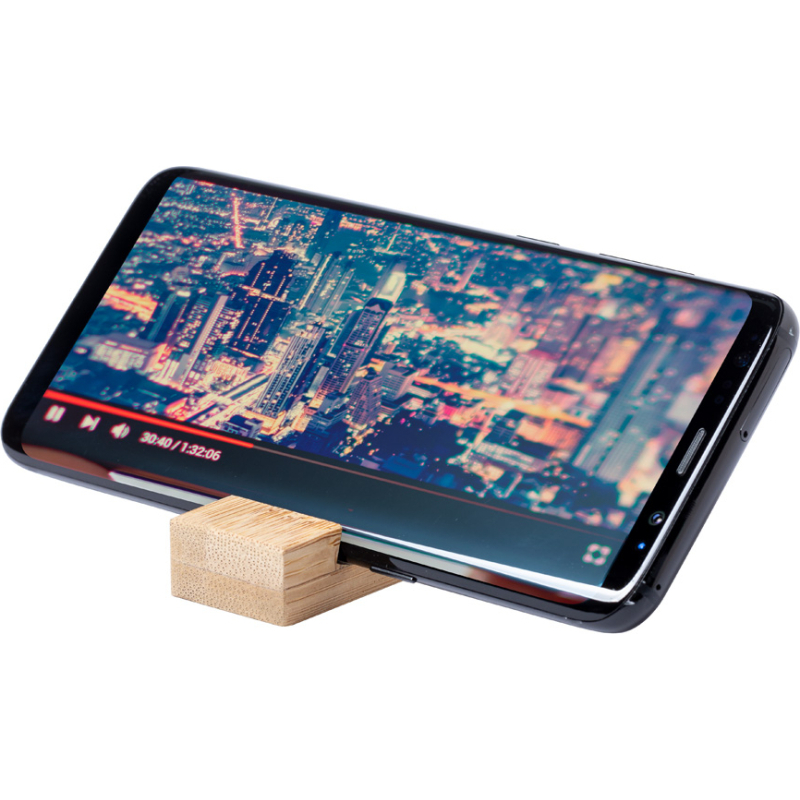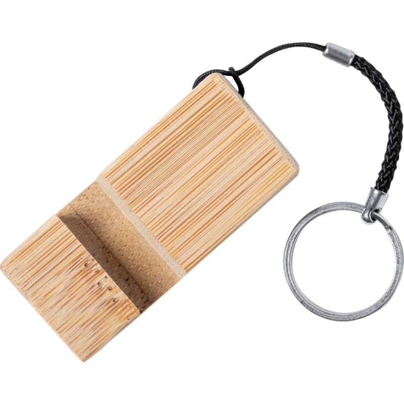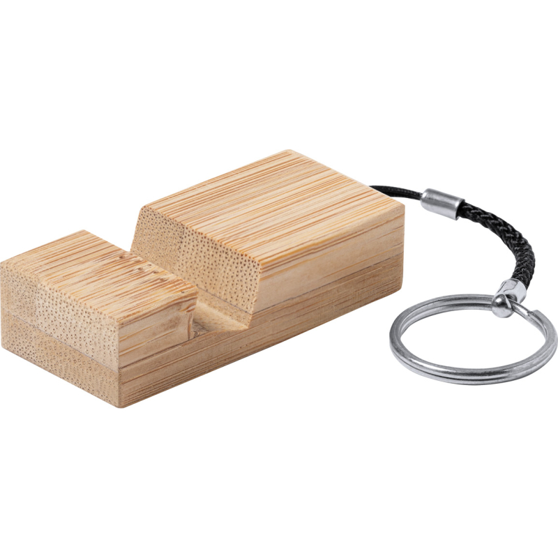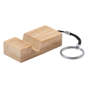 Porte-clés avec support pour portable en bambou, avec anneau en métal.