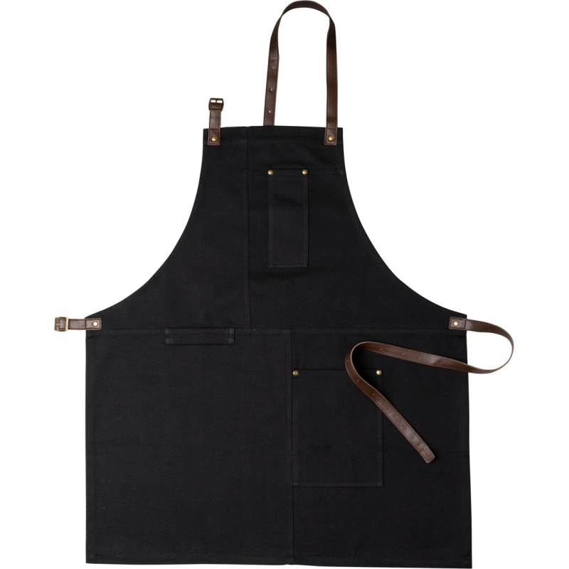 Tablier de cuisine en coton avec poches frontales et cordons réglables en PU. 340 g / m².