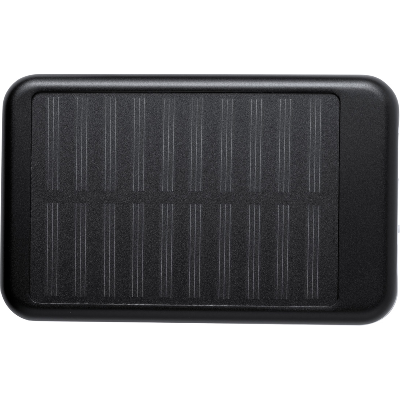 Power bank en aluminium avec batterie 4000 mAh et chargeur solaire. Livré avec un chargeur micro USB.