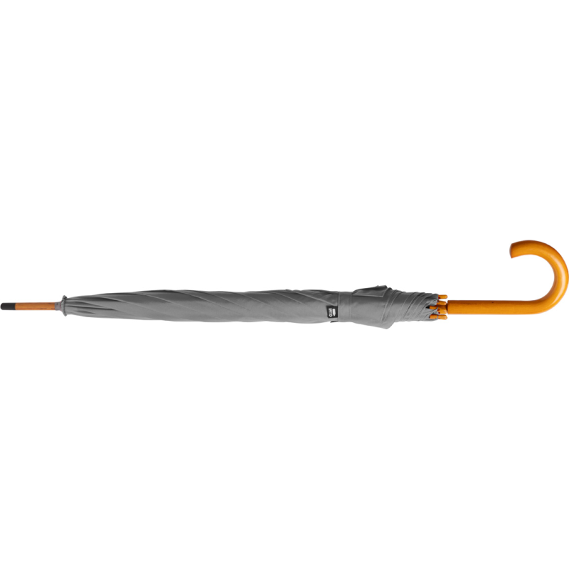 Parapluie automatique 8 panneaux, cadre en métal, manche et poignée en bois. En 190T RPET et labélisé RPET.