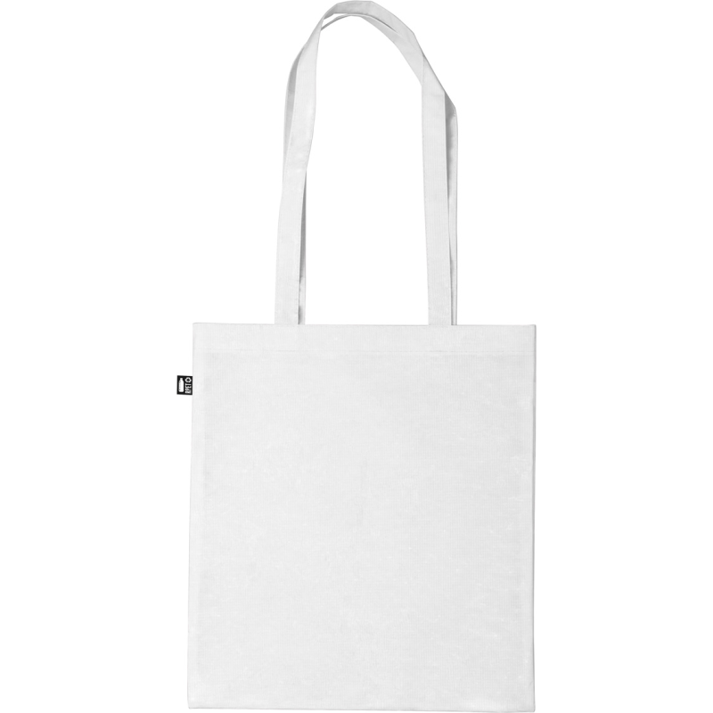 Tote bag anses longues laminé en RPET 100 g/m², labélisé RPET.