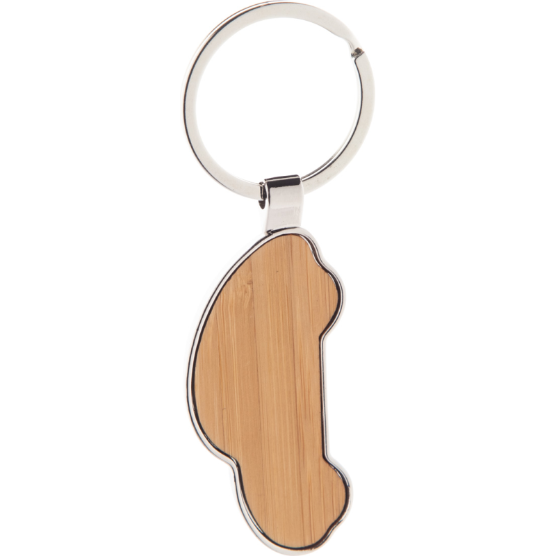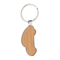 Porte-clés en métal en forme de voiture avec insert en bambou. Dans une boîte en papier kraft.