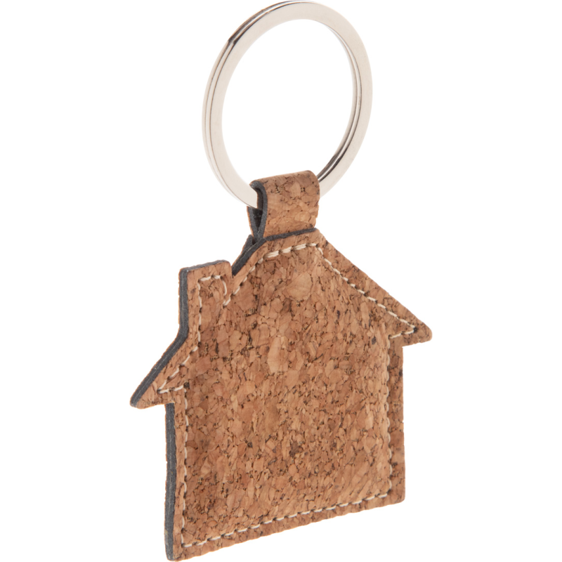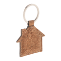 Porte-clés en forme de maison en liège et PU avec anneau en métal.