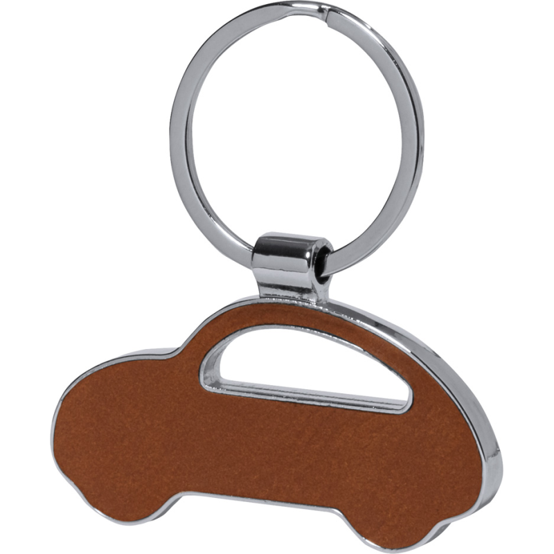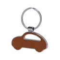 Porte-clés forme voiture en métal recouvert de cuir recyclé.