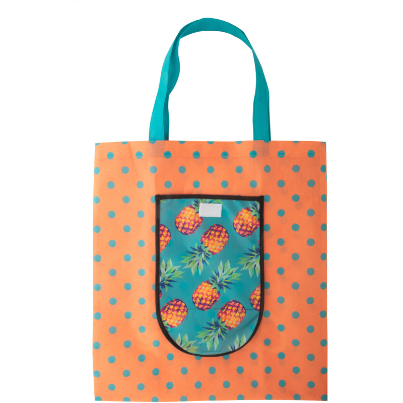 Sac shopping pliable non-tissé sur mesure avec fermeture en velcro, 80g/m2. Impression en sublimation totale. Quantité minimale : 50 pièces