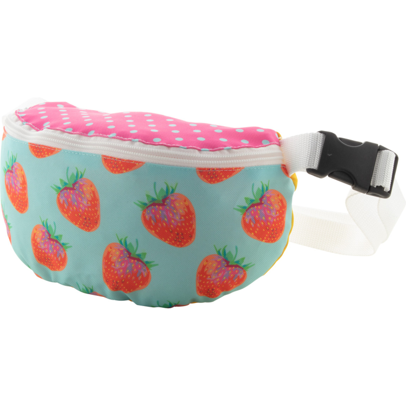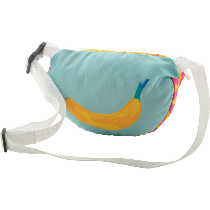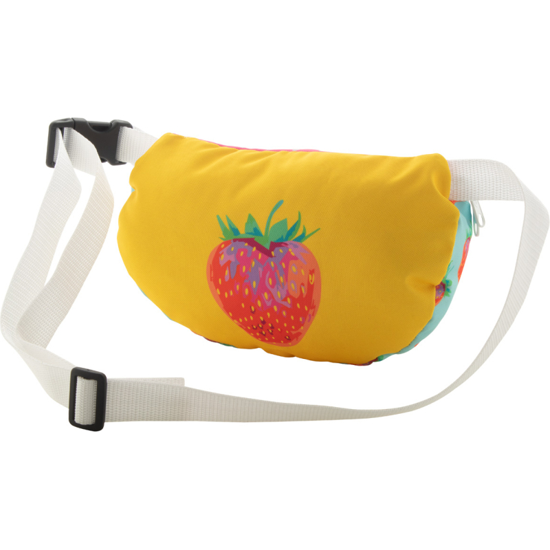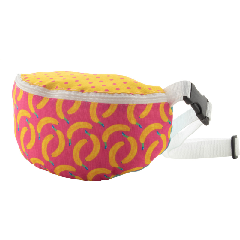 Sac banane sur mesure avec compartiment zippé, polyester 600D RPET. Impression en sublimation sur toute la surface. Labélisé RPET. Quantité minimale : 50 pièces.